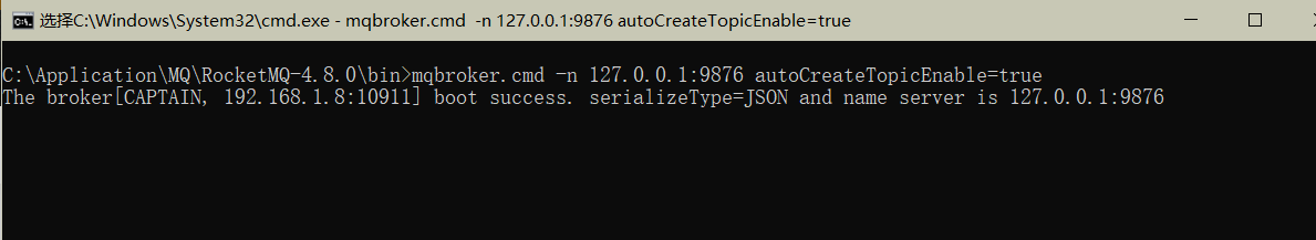 | .\bin\mqbroker.cmd -n 127.0.0.1:9876 autoCreateTopicEnable=true